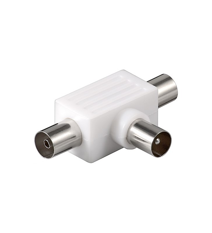 Goobay koaksial T-adapter: 2 koaksial hun> Koaksial han, støvbeskyttelsespose - plastik til tilslutning af 2 tv'