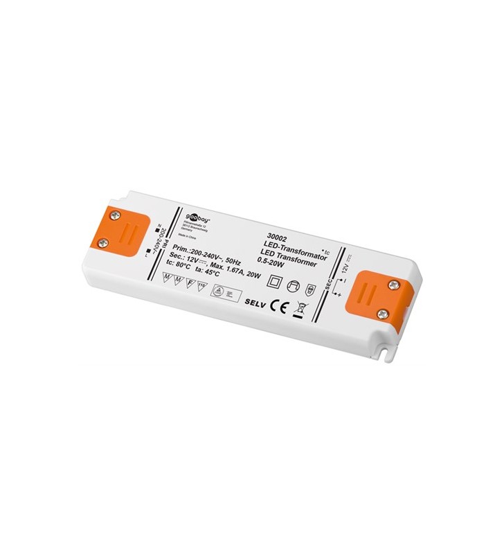 Goobay LED-transformator 24 V (DC) / 20 W, 20 W, stående kasse - 24 V DC til lysdioder op til 20 W samlet belastning DC