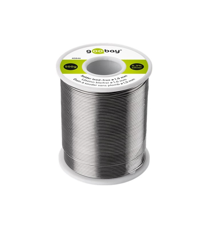 Goobay Lodde blyfri, ø 1,0 mm, 500 g, i bulk - indhold: 0,3% sølv, 0,7% kobber, 96,5% tin, indhold af fluxkerne: 2,5%, smeltepunkt 217 ° C