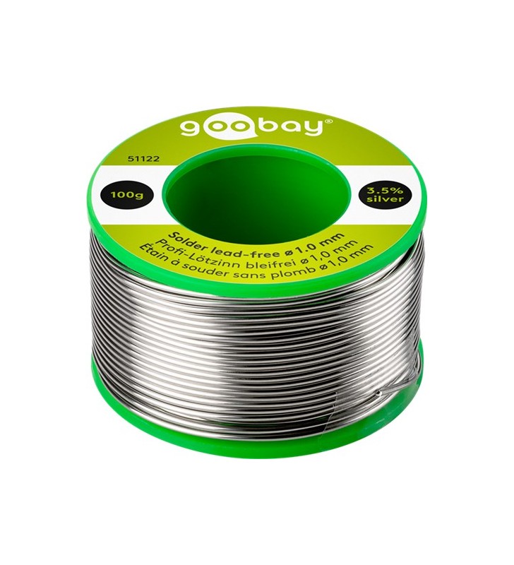 Goobay lodde blyfri, ø 1,0 mm, 100 g spole, i bulk - indhold: 3,5% sølv, 0,7% kobber, 93,8% tin, indhold af fluxkerne: 2%, smeltepunkt 217 ° C