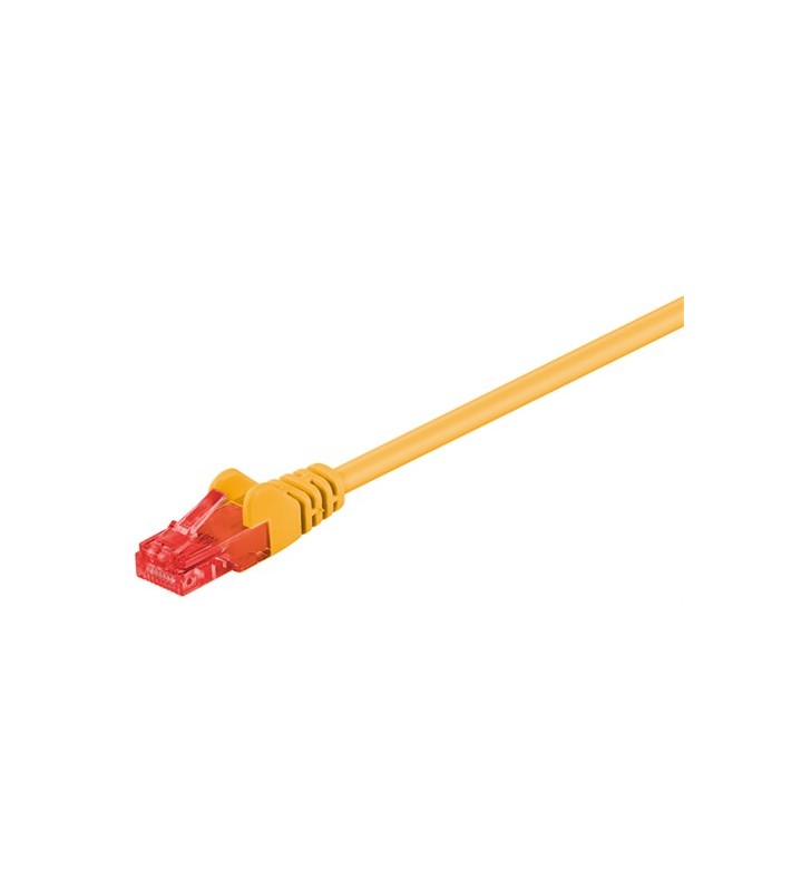 Goobay CAT 6 patchkabel, U / UTP, gul, 0,5 m, Støvbeskyttelsespose - CCA-materiale uskærmet LAN / netværkskabel til tilslutning af netværkskomponenter med 2 x RJ45-stik med 3 µ forgyldte PIN-koder med længdeangivelse på den slanke trækaflastning med låsen beskyttelsespar-sekvens iht. til EIA / TIA 568B egnet til Gigabit (10/100/1000 Mbit) netværk