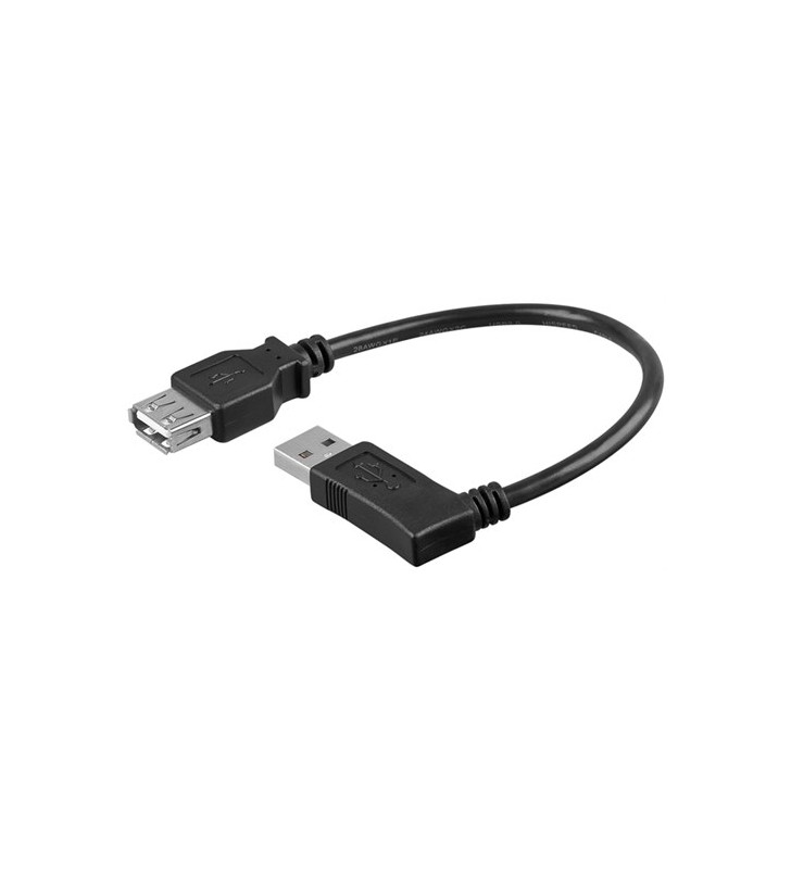 USB 2.0 Hi-Speed forlængerkabel 90 °, sort, 0,15 m - USB 2.0 hun (type A) - USB 2.0 han (type A) 90 °