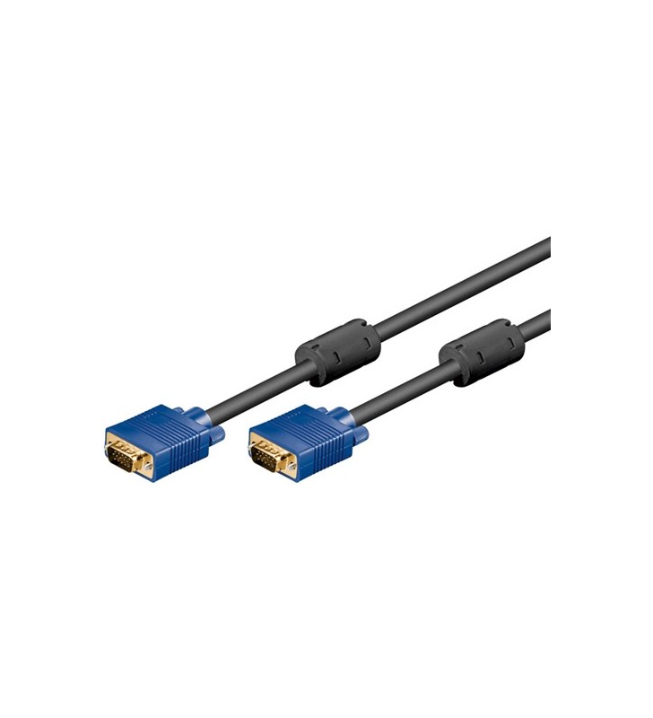 Goobay Full HD SVGA-skærmkabel, forgyldt, 1,8 m, blå-sort, støvbeskyttelsespose - VGA-han (15-polet) - VGA-han (15-polet) stikfarvekode i henhold til PC 99-systemvejledning kabel i høj kvalitet med separate afskærmede RGB videolinjer fuldt tilsluttet 3 coax (RGB) + 8 synkroniseringslinjer maks. opløsning Full HD 1920 x 1080 med 2 ferrit forgyldt
