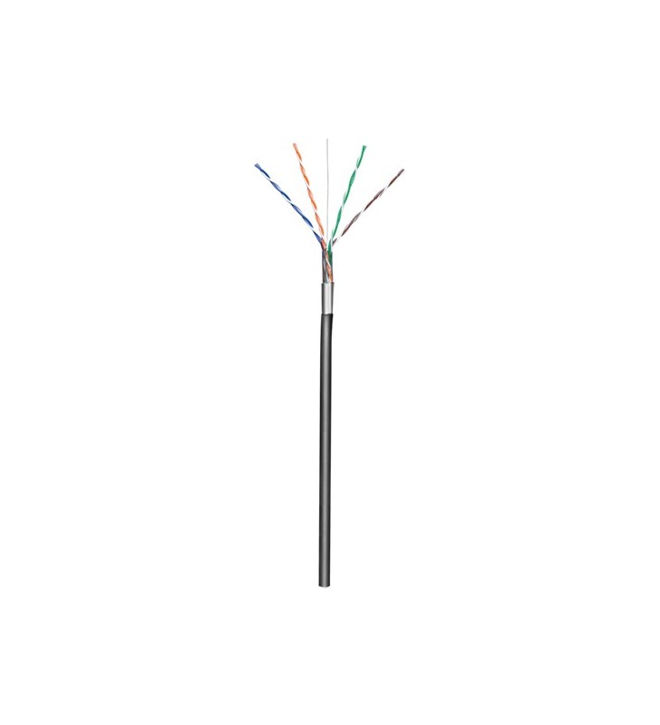 Goobay CAT 5e outdoor network cable, F/UTP, black, 100 m, Cable Reel - CCA copper mixture for SOHO applications, AWG , PE non-terminated data-/installation cable for processing and installation with LSA connection technology for Home-/outdoor usage UV and water resistent shielded twisted-pair LAN cable outer shield: foil screening This product is not approved for permanent installation in buildings. Meets requirements for SOHO applications (Small Office, Home Office) up to a max. transmission length of 70 m!