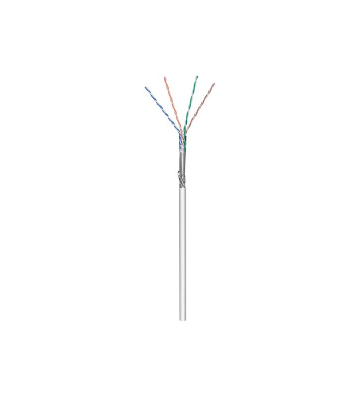 Goobay CAT 5e network cable, SF/UTP, grey, 100 m, Cable Reel - CCA copper mixture for SOHO applications, AWG 24/1 (solid), PVC non-terminated data-/installationcable for proccessing and installation with LSA connection technology for Home/ indoor using double shielded twisted-pair LAN cable outer shield: braiding + foil screening Meets requirements for SOHO applications (Small Office, Home Office) up to a max. transmission length of 70 m!