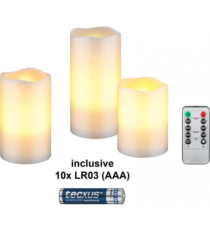 Goobay Set of 3 LED Real Wax Candles, white with 10 AAA (LR 03), Standing Box - with timer function and remote control, dimmable, battery-operated