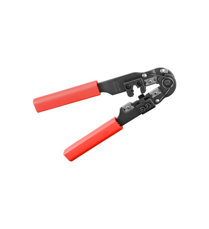 Goobay Crimping tool for modular plugs, black-red, Flap-over Blister - with wire cutter and stripping toolfor 8P8C and s
