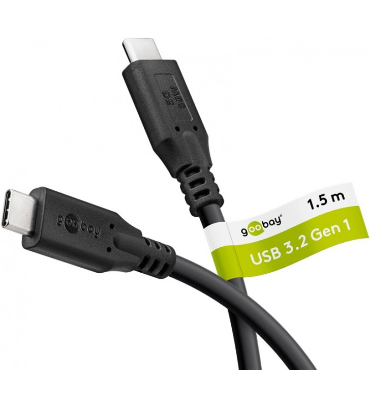 Goobay USB-C™ Cable, USB 3.2, 60 W, 5 Gbit/s, Power Delivery, 1.5 m, black, Cable Tag - USB-C™ connector > USB-C™ connector Up to 5 Gbit/s ensure lightning-fast data transfer at SuperSpeed - making the USB-C™ cable 10x faster than USB 2.0 and perfect for HD movies, series, music and photos With a powerful 60 W, the USB-C™ charging cable is perfectly tailored to power laptops, tablets, displays, SSDs, games consoles or hubs Whether at home, in the office or on the go, the USB-C™ data cable is the ideal companion for those who don't want to compromise on speed and efficiency The USB cable supports ultra-high resolutions up to 4K @ 60 Hz for crystal clear, immersive video experiences Thanks to the Power Delivery fast charging function, the cable charges devices such as smartphones and laptops at top speeds Directly connectable to ports with Thunderbolt™ 4 and Thunderbolt™ 3 and compatible with many gaming components such as the AM5 socket (Zen 4) from AMD The USB-C™ connection is compatible with notebooks and devices from popular manufacturers such as Lenovo, HP or Dell as well as with the Apple MacBook or iPad