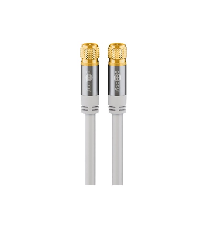 Goobay SAT antenna cable (135 dB), 4x shielded, 5 m, white, Plastic bag - gold plated, F male > F male inner conductor made of ultrapure OFC solid copper for optimal conductive and transmission properties, ensuring virtually loss-free signal routing 4-layer, ultrathick shielding material (made of ultrathick 2-layer mesh and 2-layer film) with 135 dB shielding capability the perfect balance of shielding and flexibility – the ideal shielding for ensuring perfect reception and disruption-free transmission massive solid metal connector with gold-plated contacts – for optimal durability, stability and precision wide, easy-grip metal caps for effortless, tool-free screwing optimised bend protection and flexible cable sleeving prevent the maximum bending radius from being exceeded