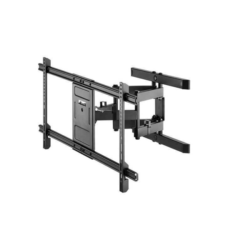 Goobay Pro TV wall mount Pro FULLMOTION (XL), black, Standing Box - for TVs from 43'' to 100'' (109-254 cm), fully mobile (swivel and tilt) up to 60kg Optimum viewing angle and maximum flexibility through full mobility in tilt (up/down from +3° to -15°) and swivel (left/right by ±60°) The wall mount keeps the TV in the position with only 77mm elegantly flat and space-saving on the wall and can be extended up to 428mm to achieve the optimal viewing angle. Adjustable scissor arm joint supports the extension and stabilizes the movement. The integrated cable management system ensures order and protection of the connection cables. suitable for most flat and curved televisions of all popular brands (e.g. Samsung (also QLED and LED), Sony, Philips, LG) and sizes (e.g. 50'', 55'', 58'', 65'', 75'', 85'') Easy mounting and compatible with VESA standards 300x200, 300x300, 400x200, 400x300, 400x400, 600x400, 800x400.