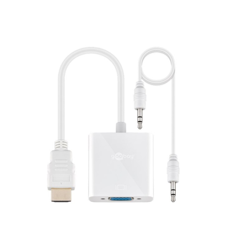Goobay HDMI™/VGA adapter, nickel plated, white, 0.15 m, Dust protection Bag - HDMI™ male (type A) > VGA female (15-pin)