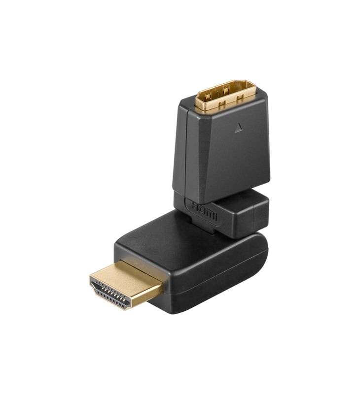 Goobay HDMI™ adapter 360°, gold-plated, 1 pc. in polybag, black, Dust protection Bag - HDMI™ female (Type A) > HDMI™ male (type A), 360° rotation